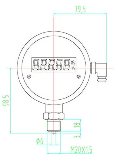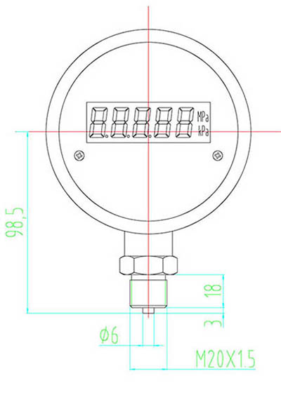 3、显示:液晶屏四位数码显示,另外带有kPa或MPa字样。